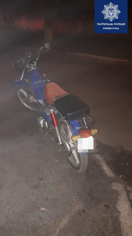 Кременчуцькі патрульні затримали 50-річного п'яного мопедиста без водійського посвідчення, який роз'їжджав містом.