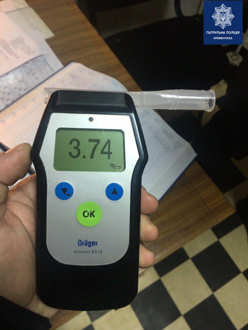 Як повідомляє пресслужба патрульної поліції, вміст алкоголю у організмі чоловіка перевищував допустиму норму у майже 19 разів.