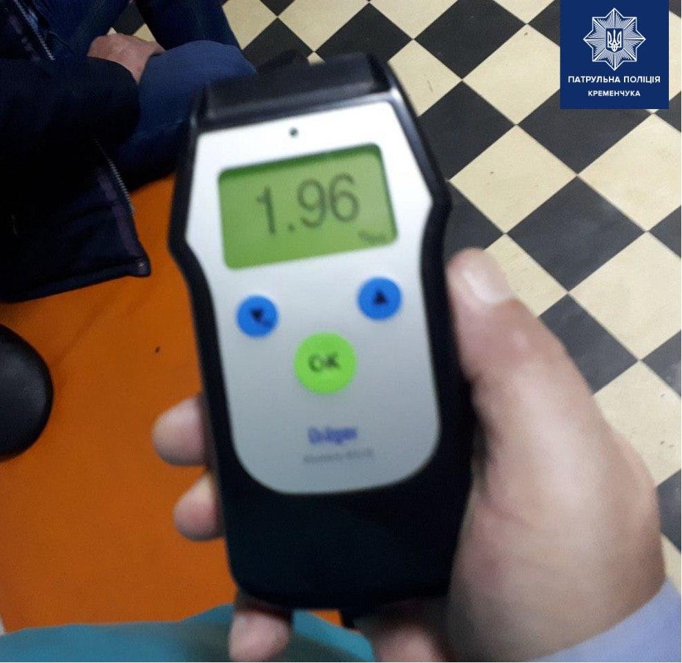 Водію запропонували пройти огляд на стан алкогольного сп‘яніння, на що він погодився. Результат: позитивний, а саме 1,96 проміле (допустима норма - 0,2).