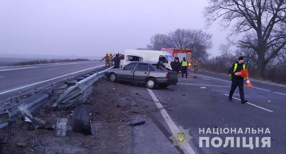 Попередньо відомо від ГУ Нацполіції в Полтавській області, що близько 6.45 49-річний мешканець Дніпропетровської області за кермом автомобіля Volkswagen наїхав на дорожнє огородження. За кілька хвилин з цим автомобілем зіткнувся Mercedes під керуванням 58-річного киянина. Потім із вказаними легковиками зіткнувся Opel, яким керував 59-річний лубенчанин.