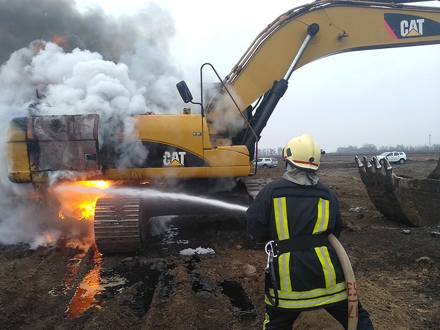 9 января в Кременчугском районе горел Caterpillar. Сообщение о пожаре в экскаваторе вблизи с. Бондари поступило в Службу спасения «101» в 11.57.