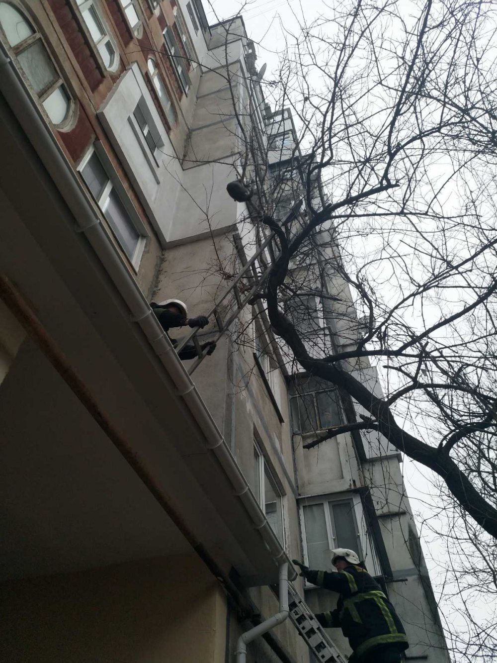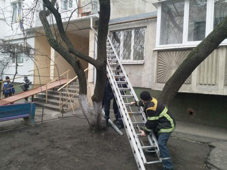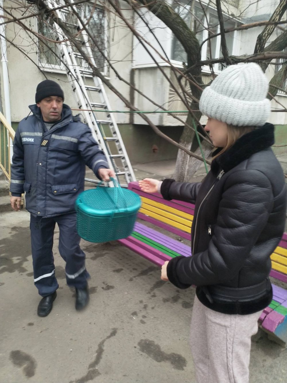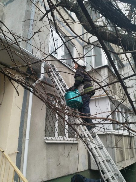 До служби порятунку зателефонувала занепокоєна власниця, яка повідомила, що домашній кіт заліз на дерево на рівень третього поверху та поранив собі лапку гілкою, а тому не може самостійно злізти додолу.