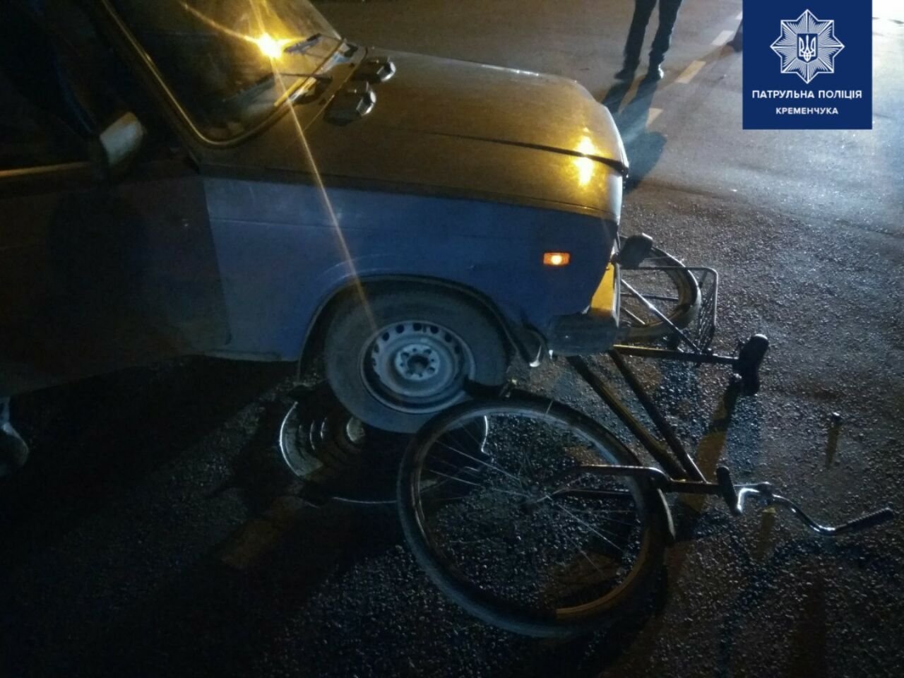 Сьогодні, 16 січня, в Кременчуці на вулиці Вадима Пугачова сталася ДТП за участю ВАЗу та велосипедиста. За попередньою інформацією від патрульної поліції Кременчука, водій машини не помітив велосипедиста, який не виділив себе на дорозі світловідбивними елементами, і наїхав на нього.