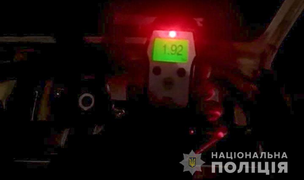 Під час освідування водія поліцейськими встановлено, що чоловік керував автомобілем в стані алкогольного сп’яніння (1,92 проміле).