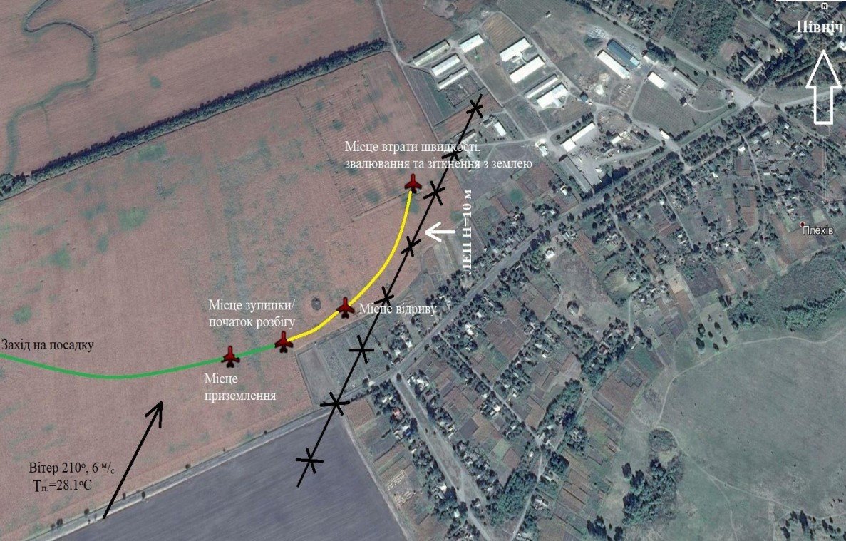 Комісія встановила, що власник літака аматорської конструкції виконав переліт з земельної ділянки поблизу села Денисівка Оржицького району на земельну ділянку поблизу села Плехів Оржицького району.