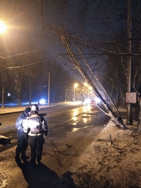 Увечері 5 лютого на вулиці Пугачова, біля будинку №9, рятувальники прибирали дерево, що упало на тролейбусну лінію. Про це інформує Кременчуцьке міськрайонне управління ДСНС.