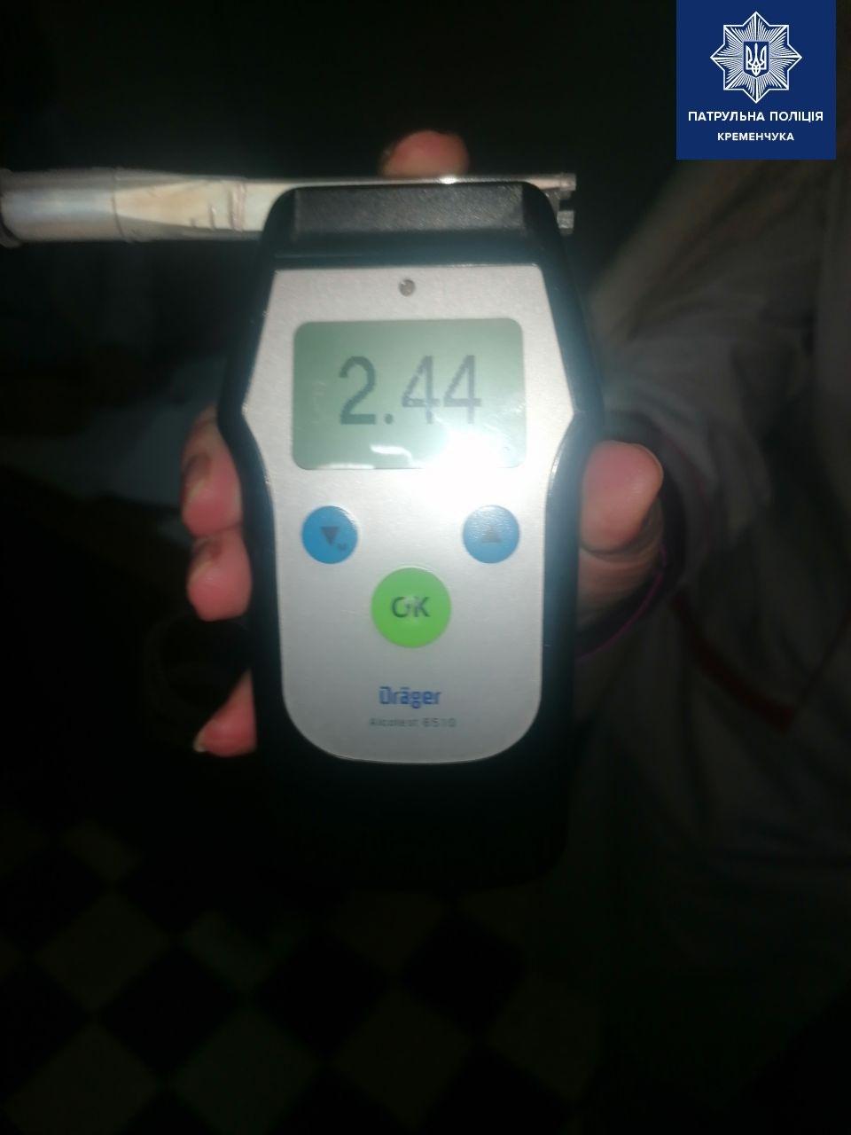 Результат огляду на вміст алкоголю в крові проказав – 2,44 проміле, що більше ніж у 12 разів перевищує допустиму норму.