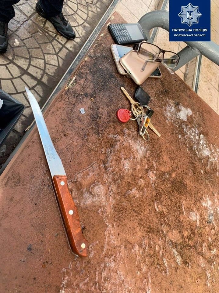 Під час перевірки охоронці порядку виявили у 46-річного чоловіка ніж. Слідчо-оперативна група з’ясовуватиме усі обставини справи.