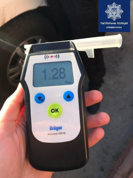 Чоловік погодився пройти огляд на стан сп’яніння. Алкотестер показав результат — 1,28 проміле, що перевищує допустиму норму (0,2 проміле) більше ніж в 6 разів.