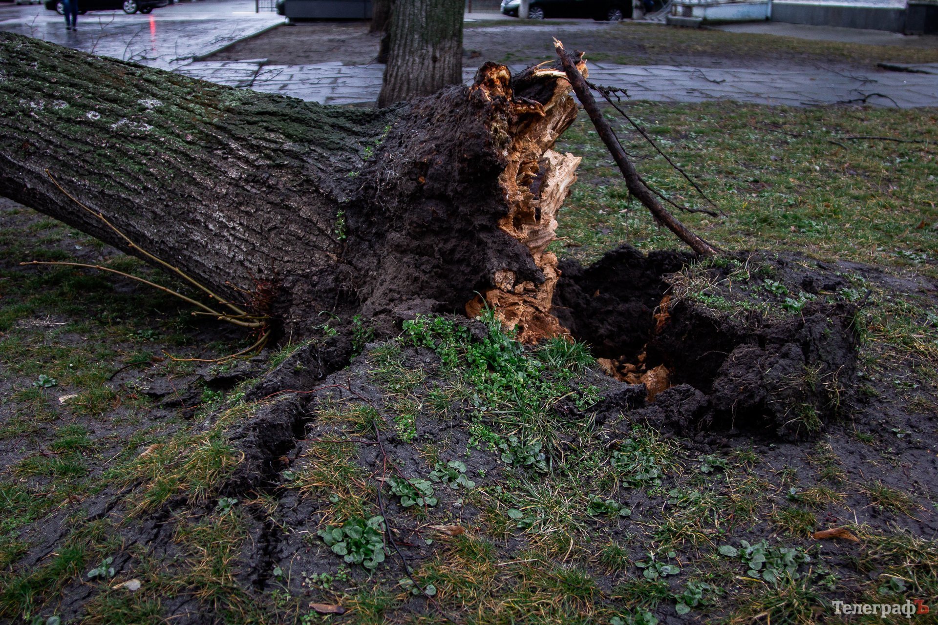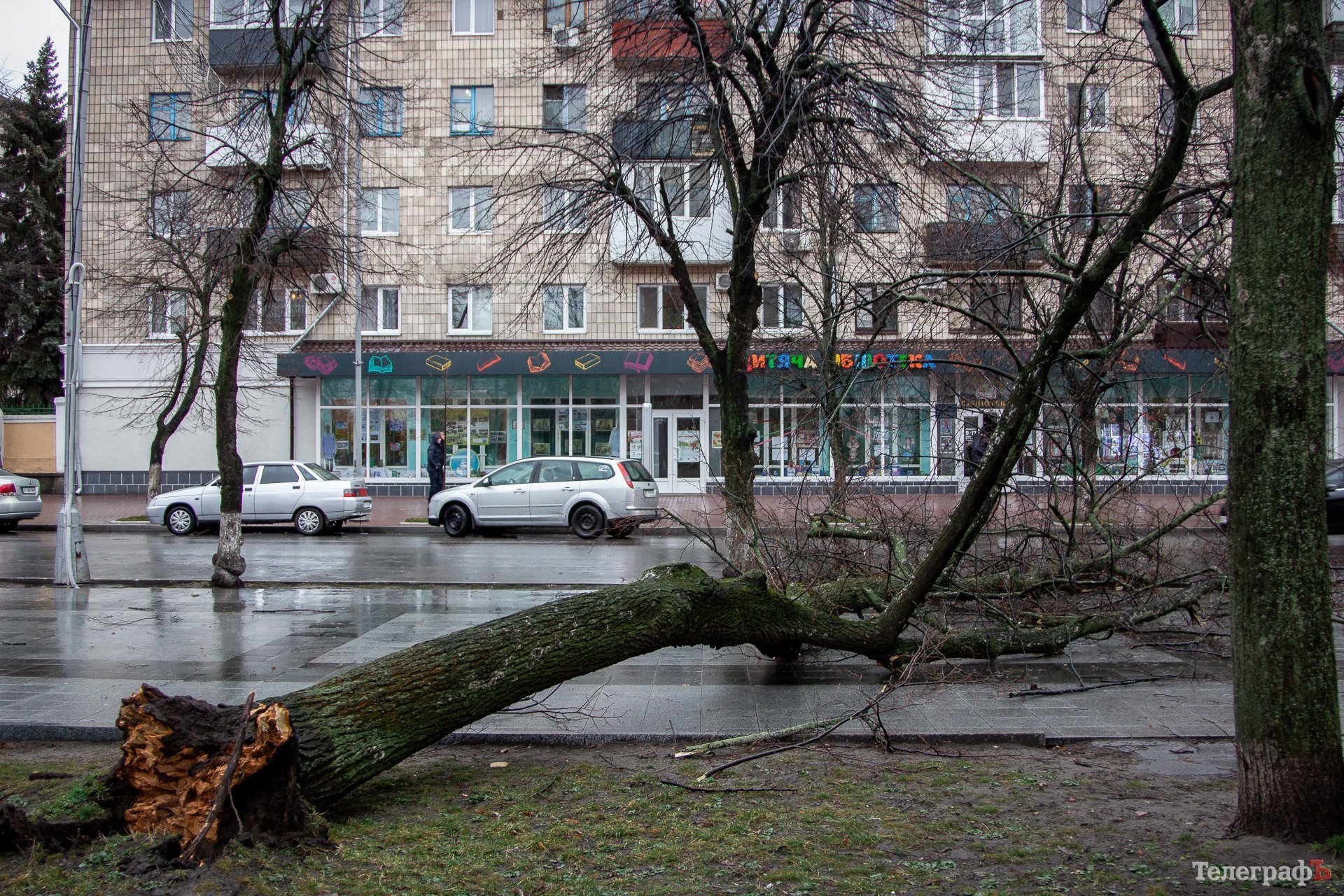 Сьогоднішня погода наробила лиха на вулиці Соборній. Неподалік скверу ім. Бабаєва, напроти Дитячої бібліотеки, близько пів години тому вітер з корінням вирвав дерево. Воно впало на тротуар.