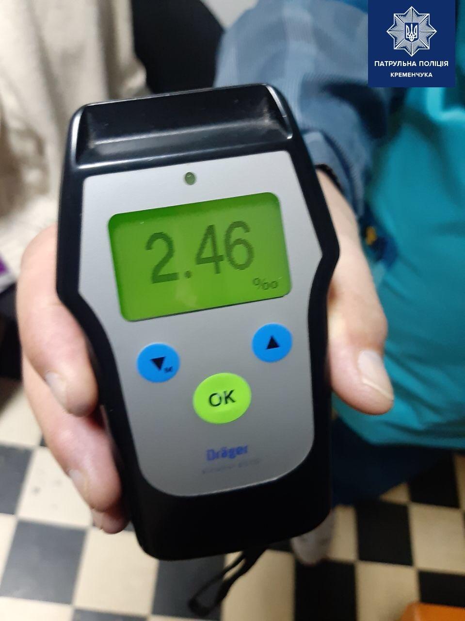 Результат огляду на вміст алкоголю в крові проказав – 2,46 проміле, що більше ніж у 12 разів перевищує допустиму норму.