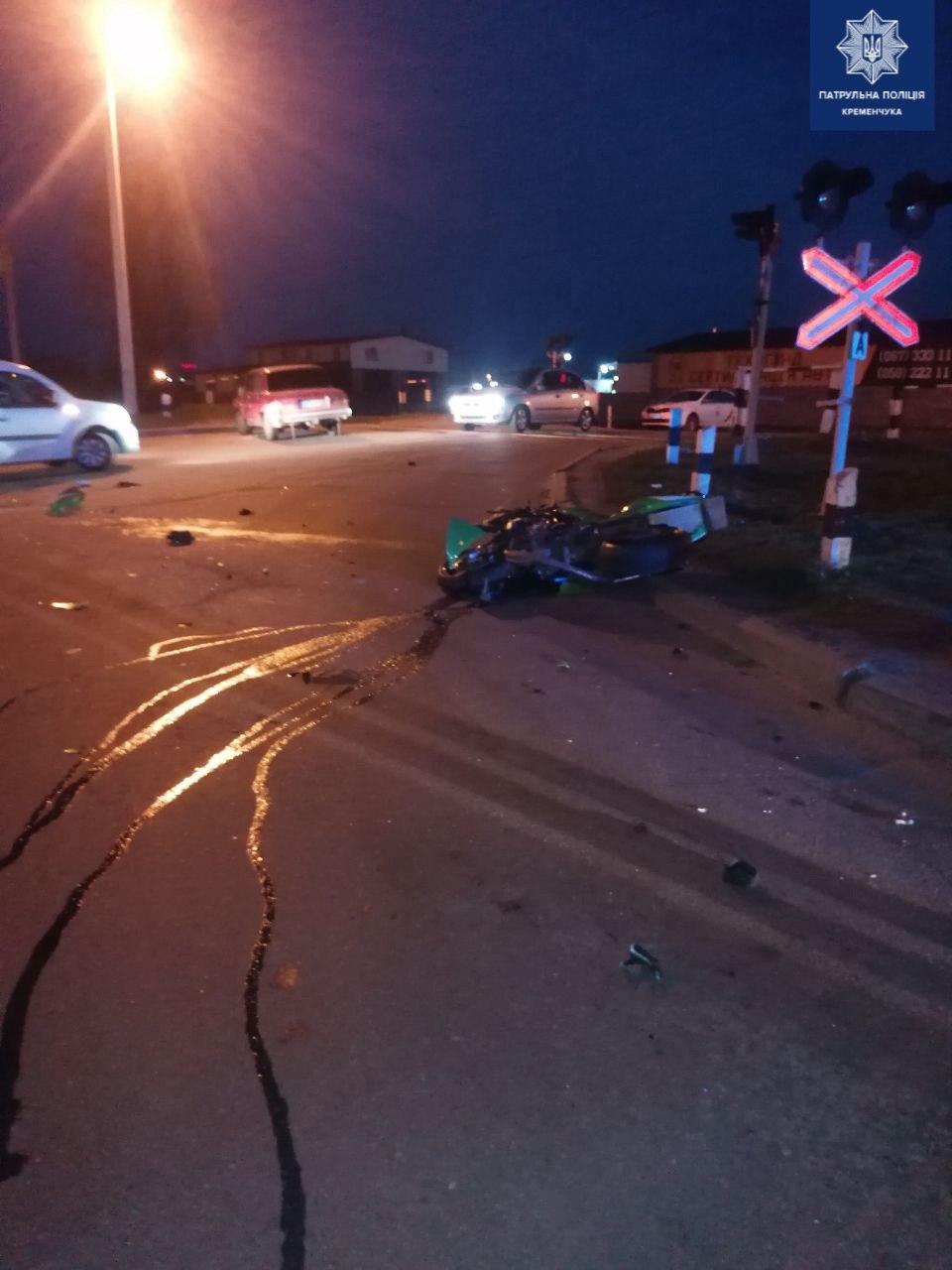 За попередньою інформацією від Кременчуцького відділу поліції, мотоцикліст не вибрав безпечної швидкості та під час маневру в’їхав у машину. Водія двоколісного транспорту госпіталізували.