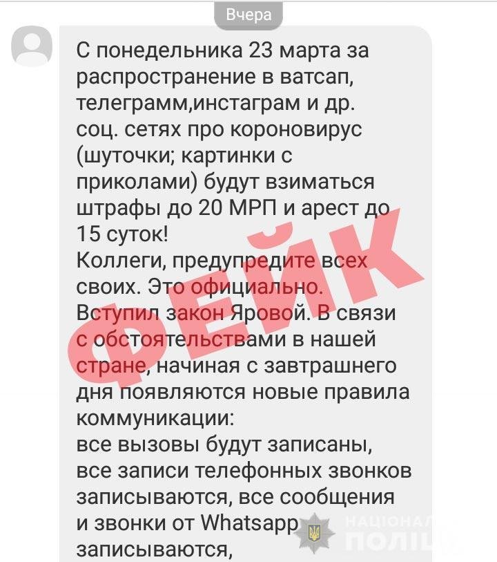 Також з’явився фейк про те, що за розповсюдження в інтернеті жартів щодо коронавірусу будуть штрафувати та можуть арештувати на 15 діб: