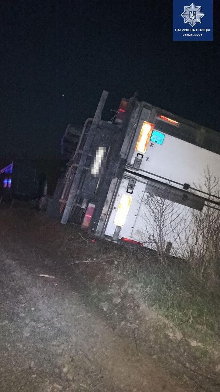 У ніч на 8 квітня на трасі М-22 «Полтава-Олександрія», на території Козельщинського району, сталася ДТП. Як інформує патрульна поліція Кременчука, водій Renault Magnum AE390 під час руху не стежив за дорожньою обстановкою та не дотримався безпечної швидкості руху.