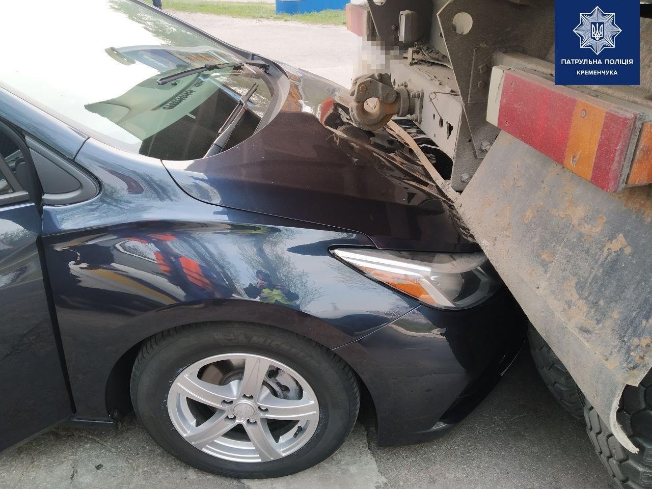 Патрульна поліція Кременчука повідомила, що водій КамАЗу рухався заднім ходом та наїхав на автомобіль Chevrolet Cruze. В результаті ДТП автомобілі отримали механічні пошкодження, люди не постраждали.
