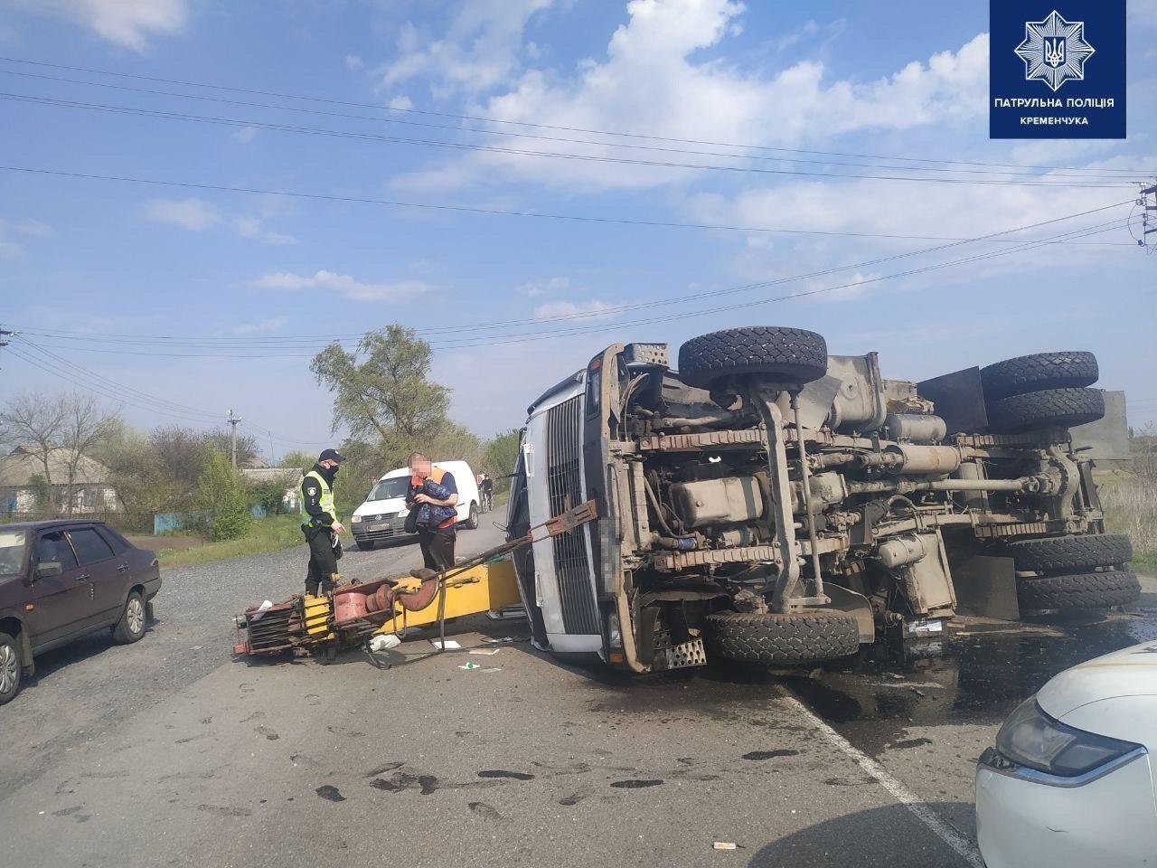 Патрульна поліція повідомила, що водій MAЗ не врахував дорожньої обстановки, не обрав безпечної швидкості руху, внаслідок чого не впорався з керуванням та перекинувся на бік на проїзній частині дороги. Водія госпіталізовано, діагноз встановлюється.