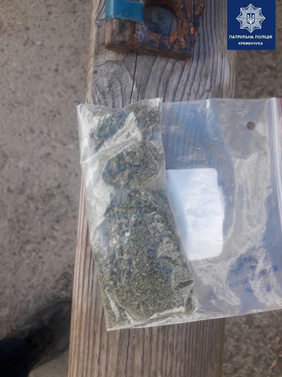 Як повідомила пресслужба патрульної поліції Кременчука, спочатку копи помітили громадянина, який розпивав алкогольні напої в громадському місці. А під час поверхневої перевірки інспектори виявили у порушника кастет та поліетиленовий пакет із наркотичною речовиною зеленого кольору рослинного походження.
