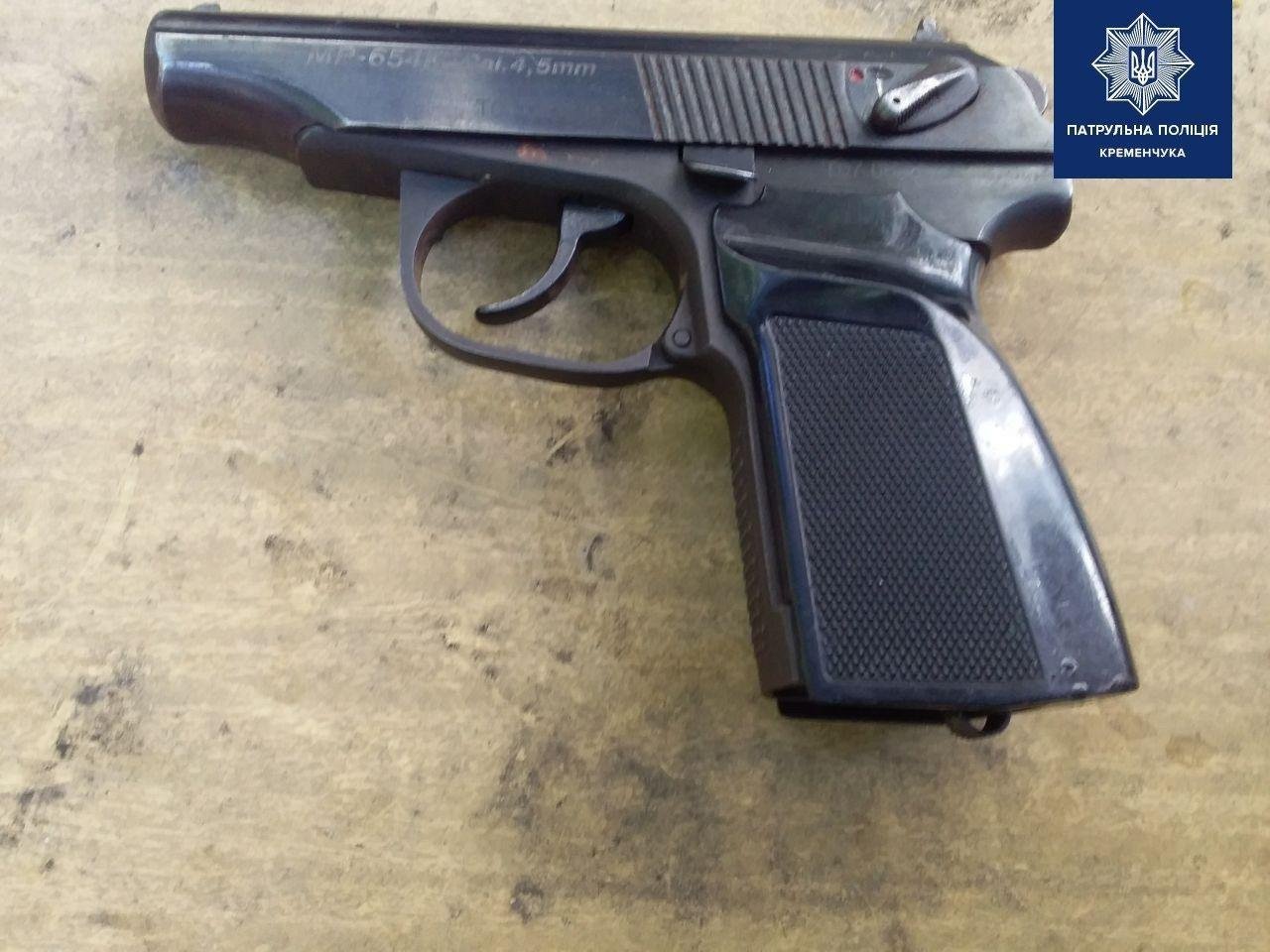 Прибувши на вулицю 29 Вересня, порушника затримали. Під час поверхневої перевірки в останнього виявили пістолет.