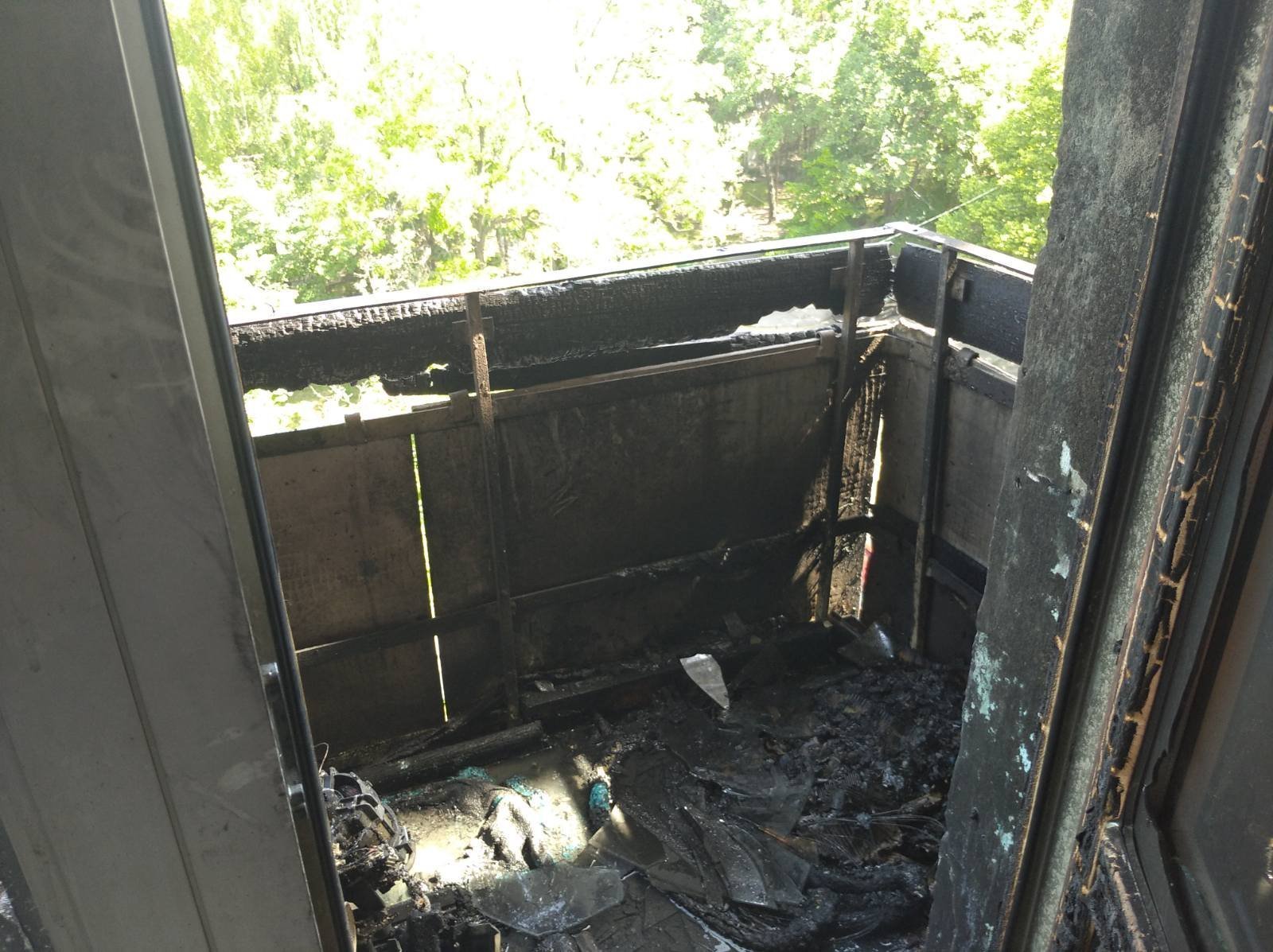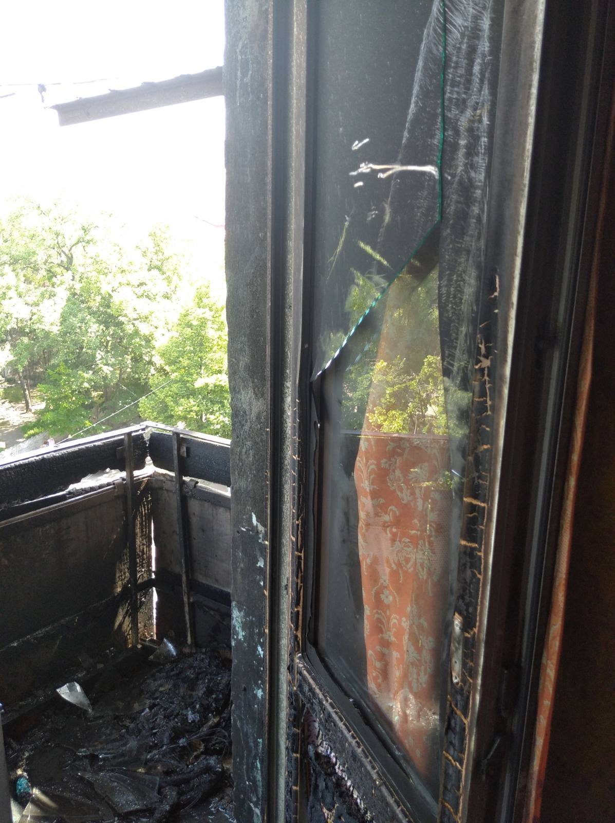 У результаті пожежі згоріли дерев’яні конструкції огородження балкону, пральна машина, стеклопакети балконого блоку, пластикові двері, речі. Полум’я закоптило зовнішню цегляну стіну будинку площею близько 7 кв. та стелю кімнати на площі 2 кв. м.