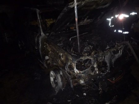 Додано: поліція розбирається, хто підпалив машину. Попередньо відомо від Кременчуцького відділу поліції, що невідомі через паркан кинули пляшку із запалювальною сумішшю. Власниця автомобіля - 65-річна жінка.