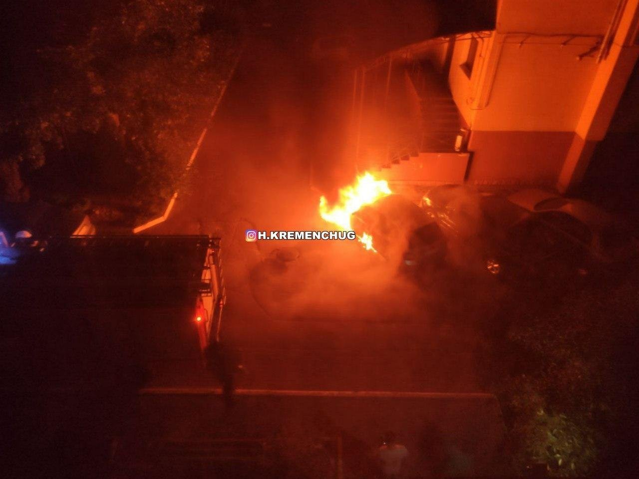 Вогонь зачепив авто Skoda Octavia, який стояв поруч. У сусіднього авто пошкоджено передній бампер, передню ліву фару головного світла та передню ліву проти фару.