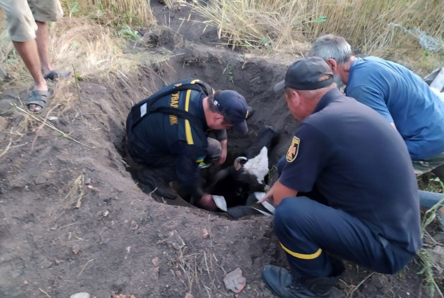 У суботу ввечері, о 20:25 до Служби порятунку «101» надійшло повідомлення про те, що в с. Задовга Козельщинського району корова потрапила до ями звідки самостійно вибратись не змогла.