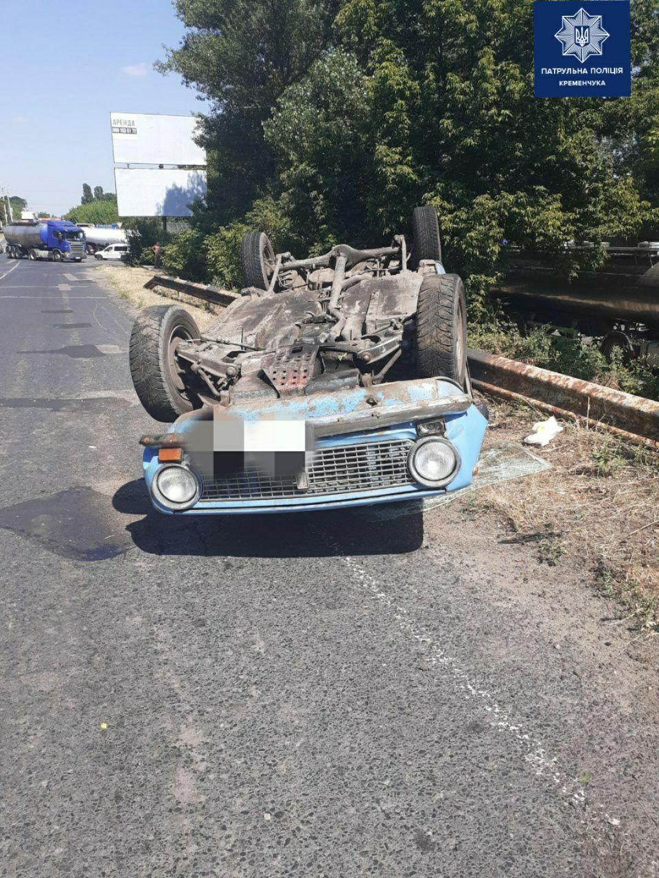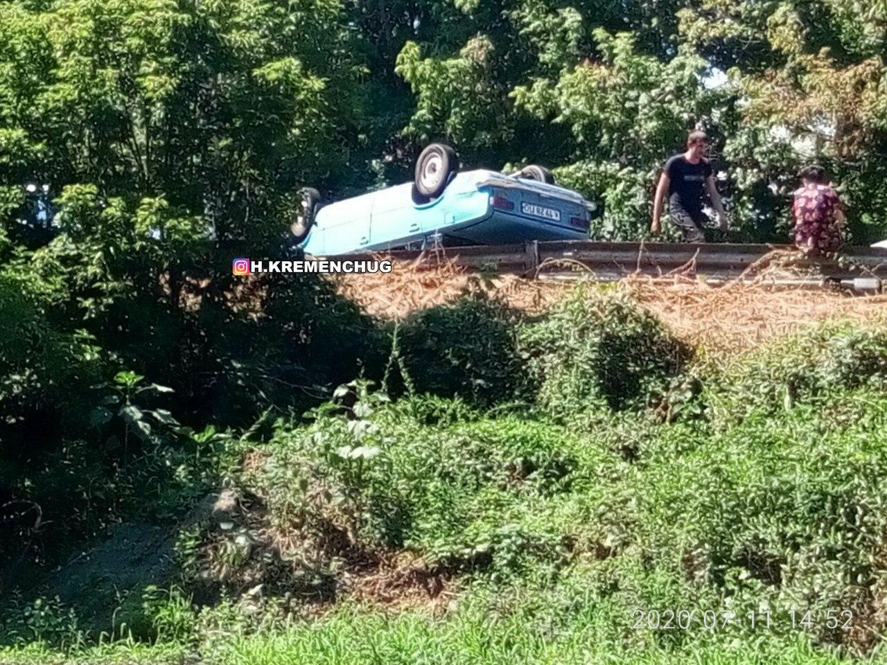Як пишуть у h.kremenchug, між двома шляхопроводами у Великій Кохнівці «копійка» перекинулась на дах.