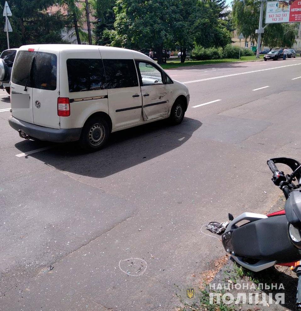 Близько 8.00 у Полтаві (на перехресті вулиць Харчовиків – Лютневої Революції) водій автомобіля ГАЗ в’їхав у мотоцикл Honda Harnet.