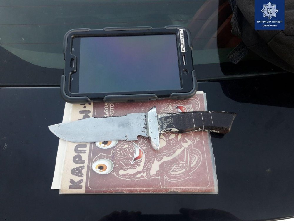 22 липня поліція затримала двох молодиків з ножем та наркотиками. Про це інформує патрульна поліції Кременчука.