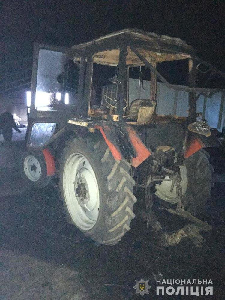 Два вантажних автомобіля та трактор, що належать місцевому 44-річному фермеру з Кобеляцького району, пошкоджені внаслідок підпалу.