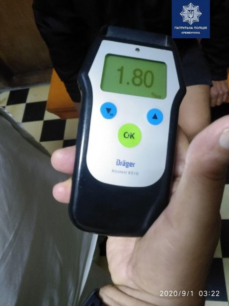 У ніч на 1 вересня на вулиці Богдана Хмельницького патрульні звернули увагу на мопед, водій якого порушив правила дорожнього руху. Під час спілкування з керманичем копи помітили в останнього ознаки алкогольного сп’яніння. Алкотестер «Драгер» показав результат — 1,8 проміле, що у 9 разів перевищує допустиму норму. Документи на транспортний засіб чоловік показати не зміг, - повідомляє патрульна поліція.
