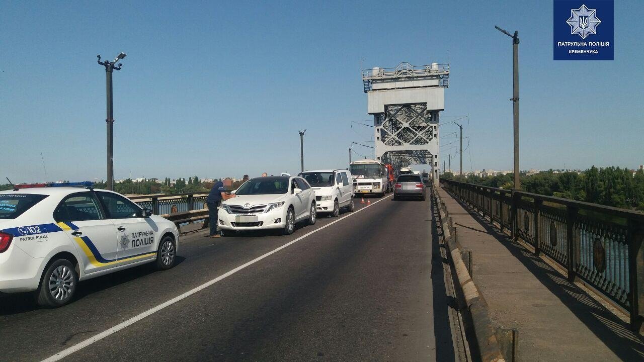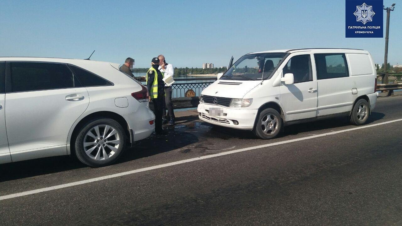 Сьогодні, 21 вересня, на Крюківському мосту сталася ДТП без потерпілих. У патрульній поліції повідомили, що водій Mercedes-Benz не дотримався безпечної дистанції та зіткнувся з автомобілем Toyota.