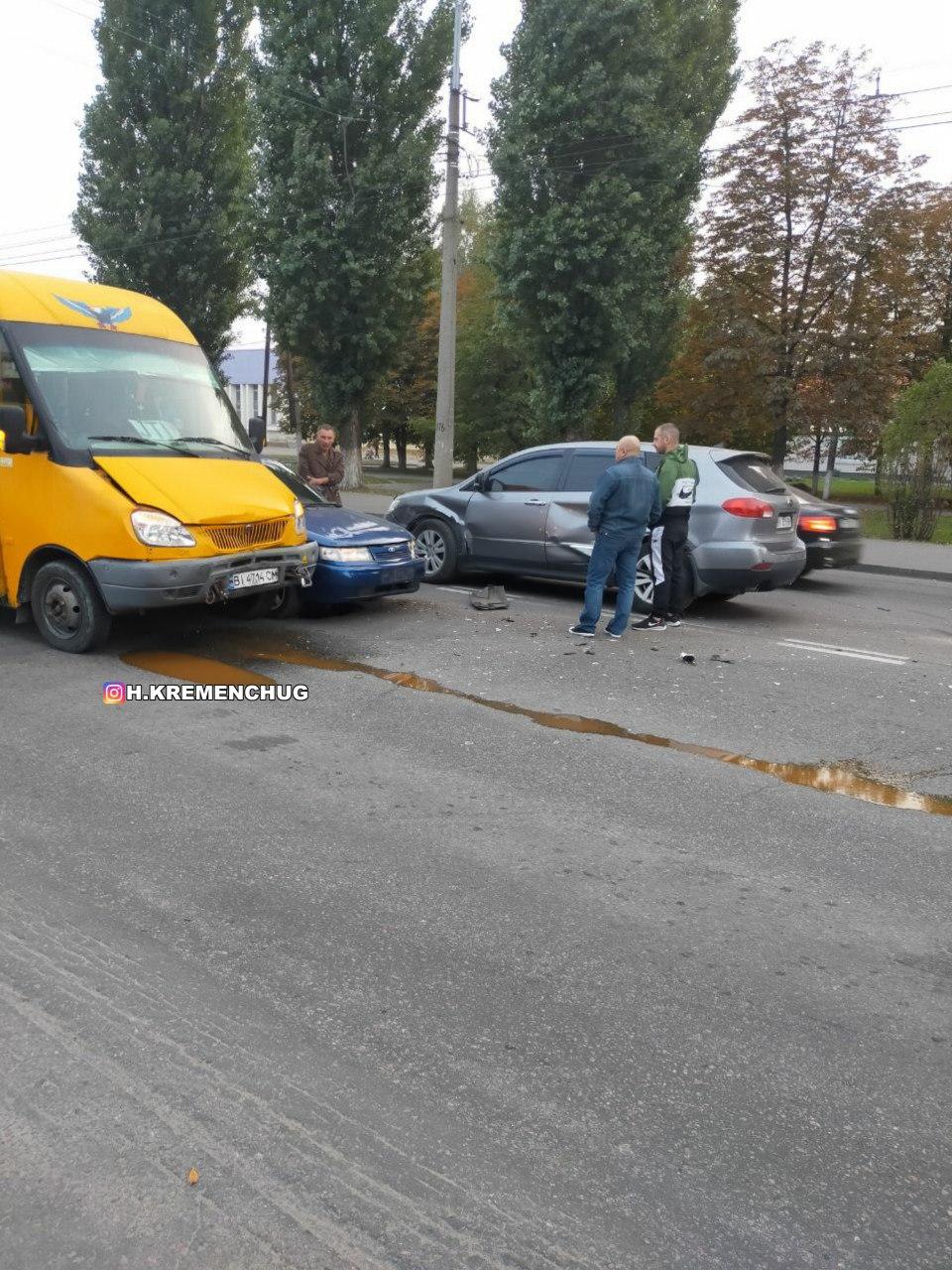 10 жовтня, близько 17.45, біля зупинки «Вул. Керченська» сталося потрійне ДТП. Як повідомляють очевидці у спільноті h.kremenchug, зіткнулися ВАЗ, маршрутка і Subaru.