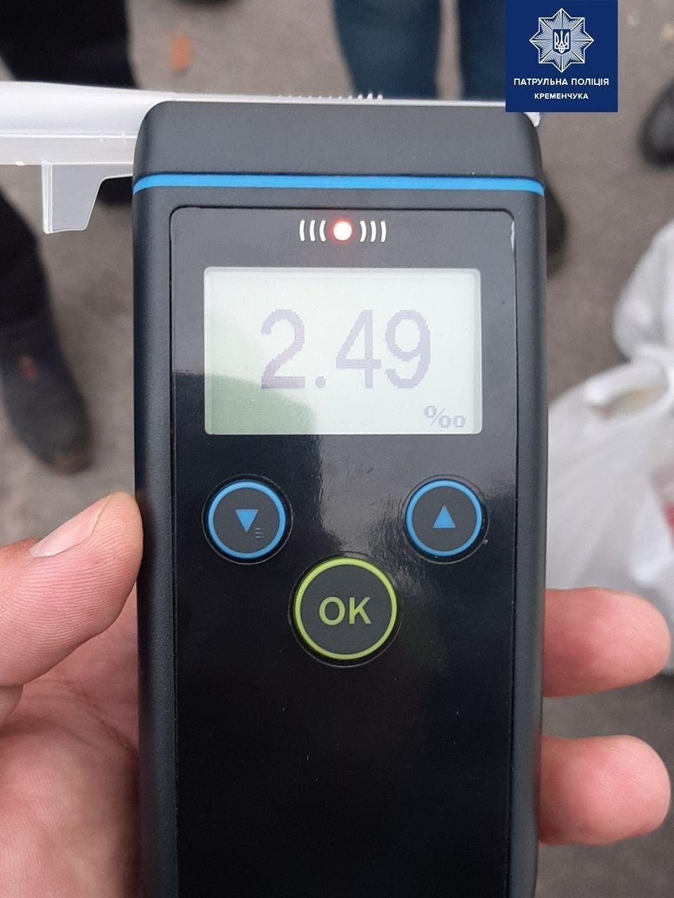 Копи помітили у винуватця ДТП явні ознаки алкогольного сп’яніння. Алкотестер показав результат — 2,49 проміле, що у 12 разів перевищує допустиму норму.