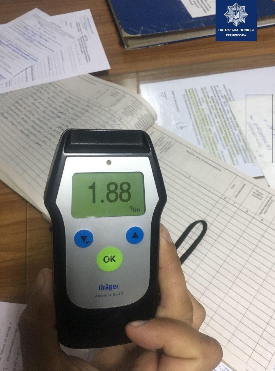 Вдень 24 жовтня патрульні виявили у Кременчуці трьох водіїв з характерними ознаками алкогольного сп’яніння, які роз’їжджали містом. За інформацією патрульної поліції, інспектори склали на керманичів адміністративні матеріали за ст. 130 (Керування транспортним засобом у стані алкогольного сп’яніння) КУпАП, вилучили водійські посвідчення та відсторонили від керування.