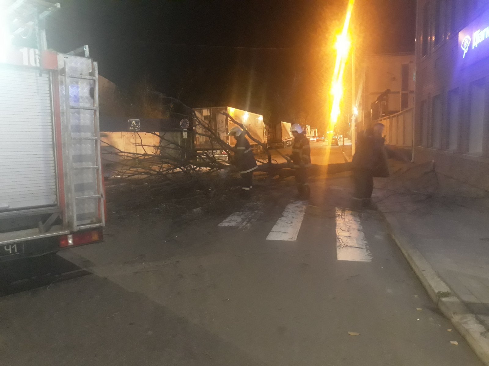 Рятувальникам надійшла інформація від Служби допомоги мера про те, що по вул. І.Сердюка, в районі будинку №57 на проїжджу частину впало дерево, перекривши рух автотранспорту. Позаяк дерево лежало прямо на повороті з просп. Свободи, це створювало загрозу ДТП.