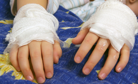 У дівчинки термічні опіки ІІ-го ступеню грудної клітини та лівої руки. На момент госпіталізації лікарі оцінювали її стан як середньої тяжкості.
