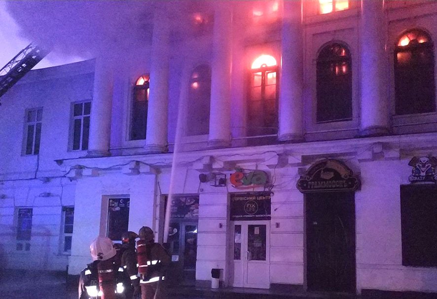 У Полтаві горить кінотеатр. За інформацією Державної служби з надзвичайних ситуацій у Полтавській області, сьогодні о 4.30 загорівся літній майданчик у кафе поруч. Проте вогонь перекинувся на покрівлю закладу, а потім по суміжних приміщеннях розповсюдився на будівлю кінотеатру ім. І. П. Котляревського.