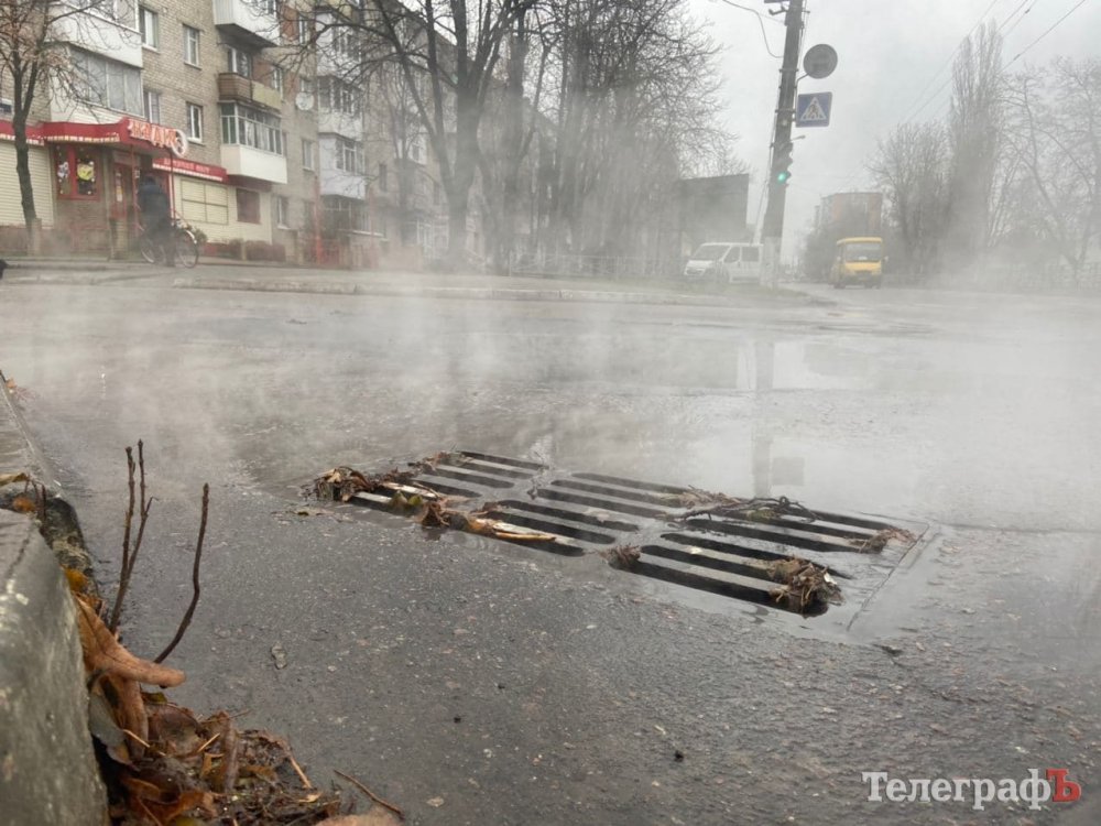 В Кременчуге на Троицкой открылся термальный источник. Пар шурует с ливневки.