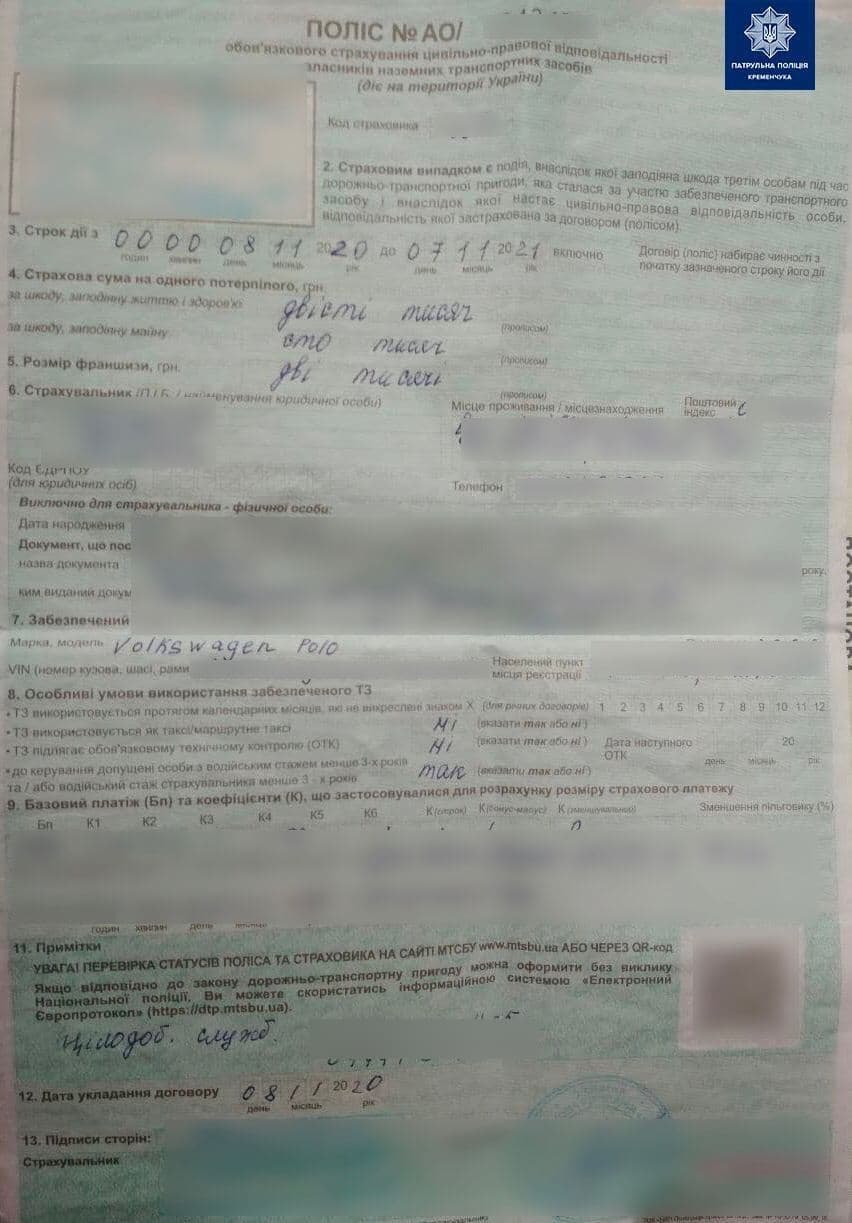Під час перевірки документів, які надала жінка, патрульні побачили, що у страхового поліса є ознаки підробки. Тож на місце викликали слідчо-оперативну групу.
