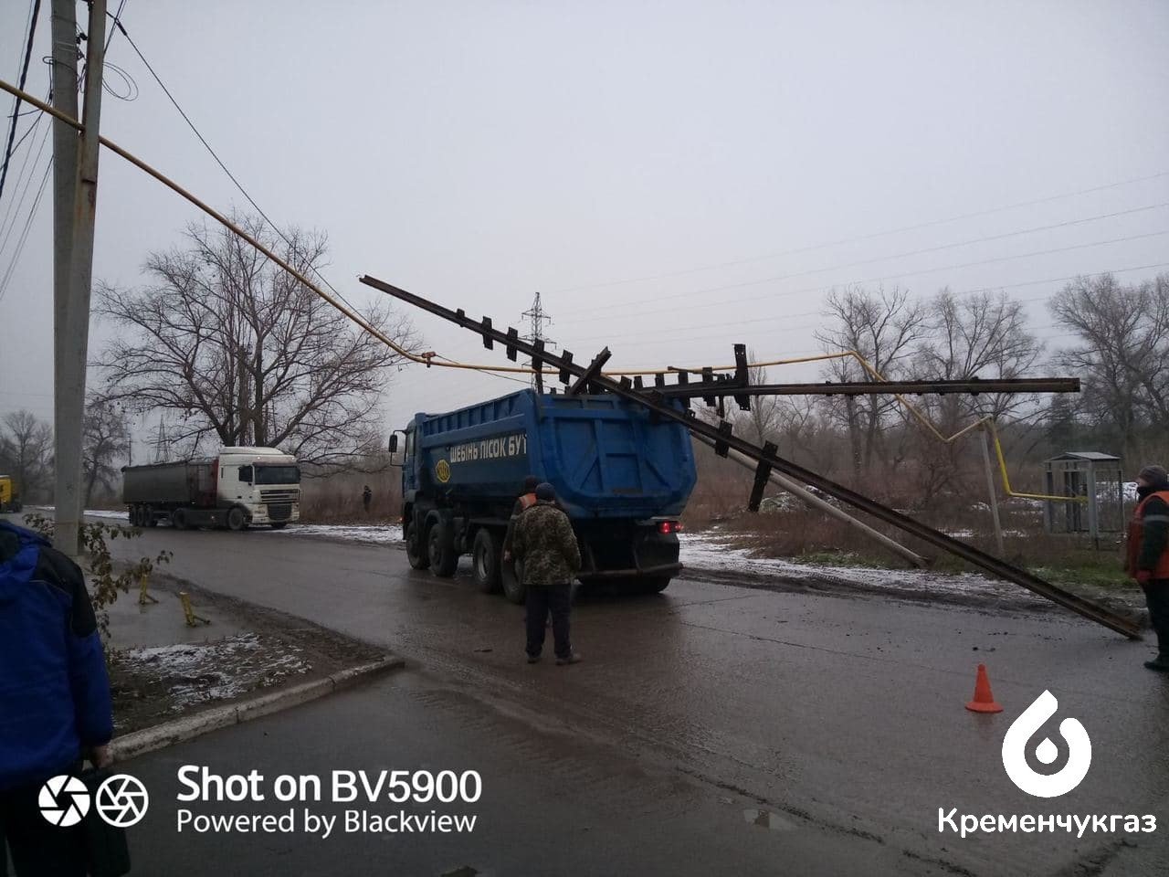 Автомобіль марки MAN кар’єроуправління рухався у напрямку Першого Занасипу. У кузові вантажівки були негабаритні металеві конструкції, які й зачепили наземну мережу газопроводу, зруйнувавши його. Водій машини повідомив про витік газу службу 104 ПрАТ «Кременчукгаз». Аварійна бригада негайно прибула на місце події та оперативно усунула витік, що загрожував небезпекою. Ніхто з людей не постраждав.