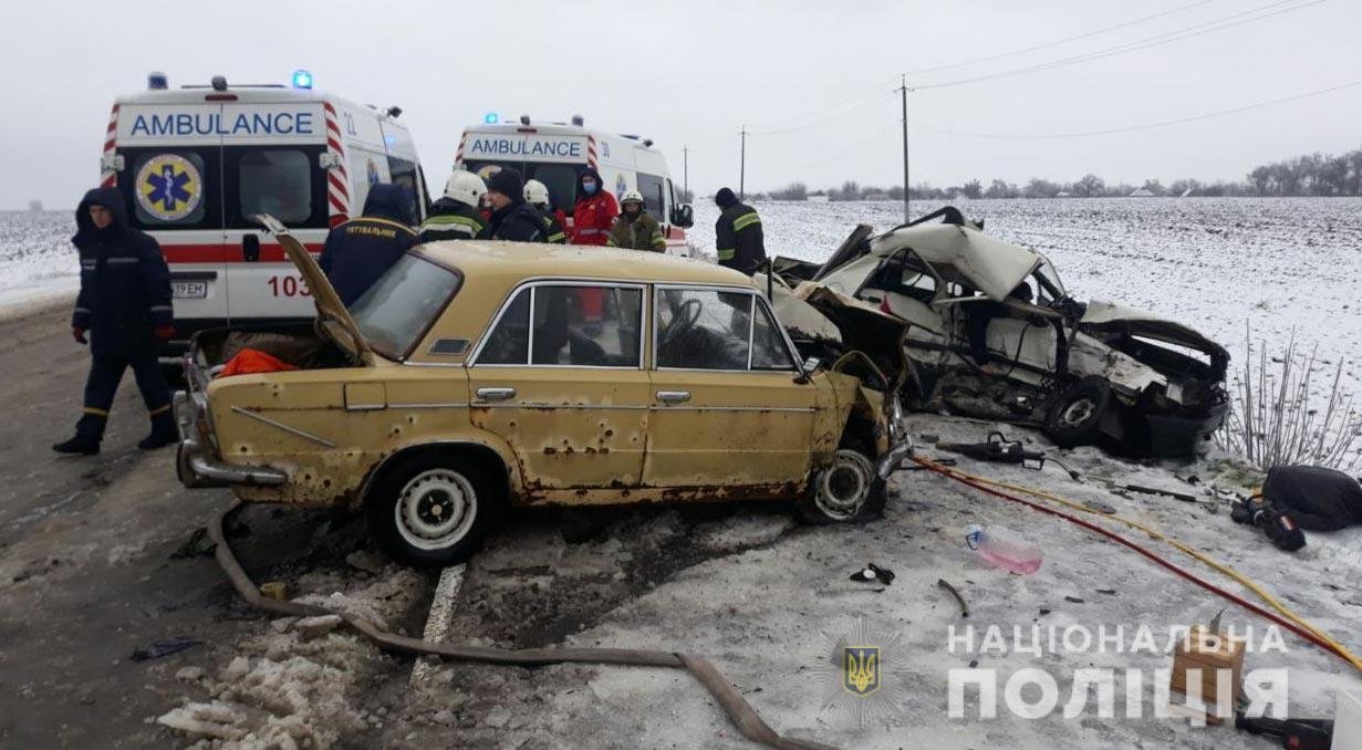 У наслідок ДТП водій автомобіля «Пежо» загинув на місці події. Водій автомобілем «ВАЗ 2106» госпіталізований до реанімаційного відділення з чисельними травмами.