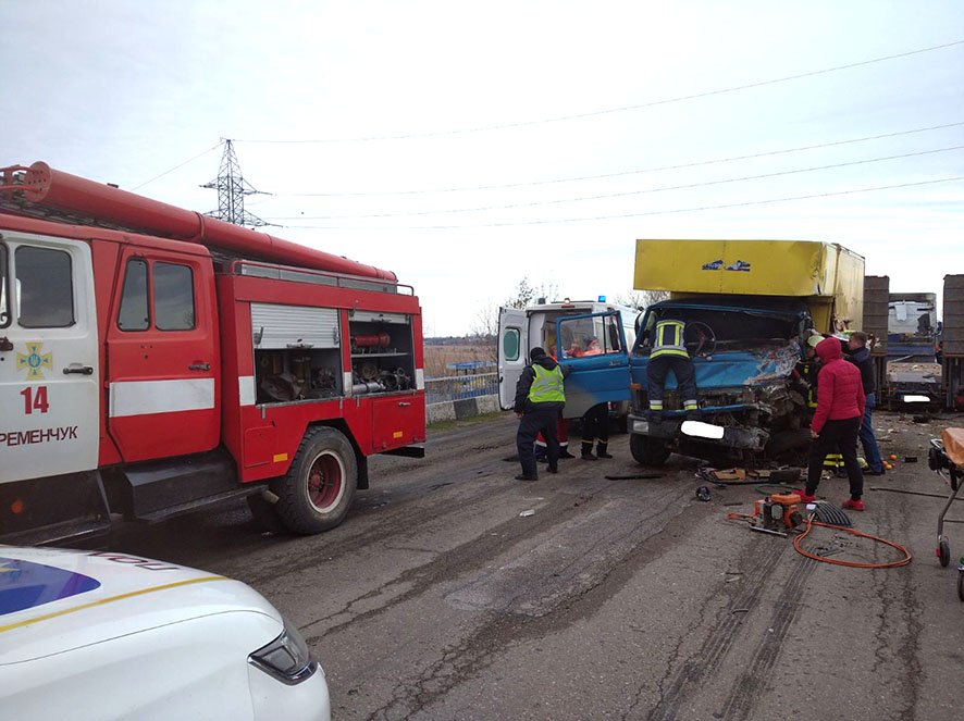 Одна з вантажівок рухалася у напрямку Кременчука, інша – у напрямку Полтави. Водій Mercedes виїхав на зустрічну смугу і зіштовхнувся з Ford. Унаслідок аварії водій-порушник отримав травми. Його госпіталізували.