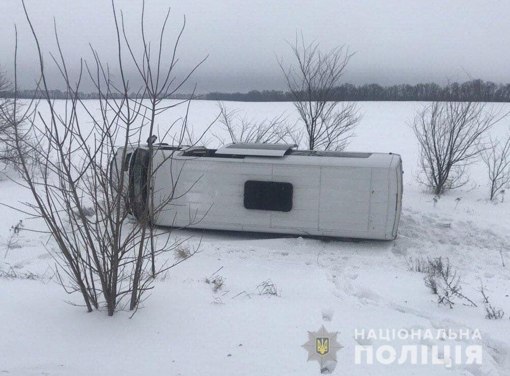 На Полтавщині на трасі внаслідок ДТП перекинувся мікроавтобус з пасажирами. Як повідомляє Головне управління Національної поліції у Полтавській області, це сталося сьогодні, 9 лютого близько 14.00 на трасі «Київ-Харків-Довжанський» поблизу міста Гребінка.