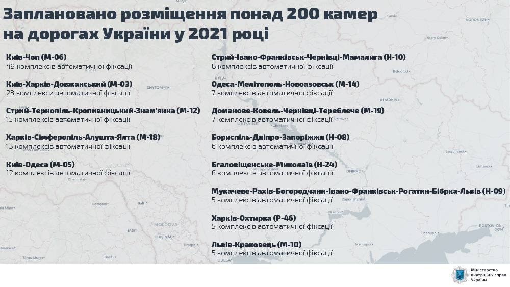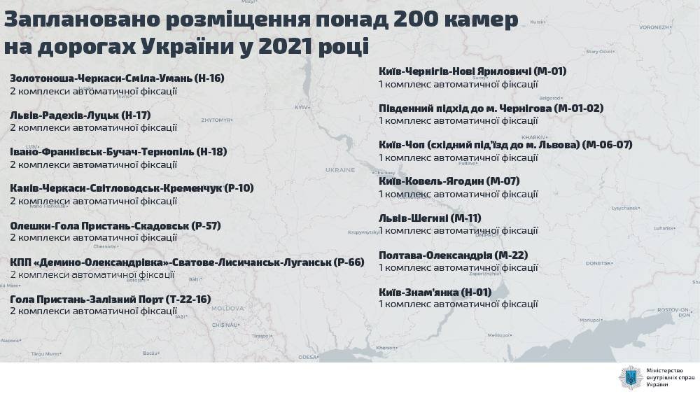 Загалом на трасах України з'явиться 220 таких комплексів: