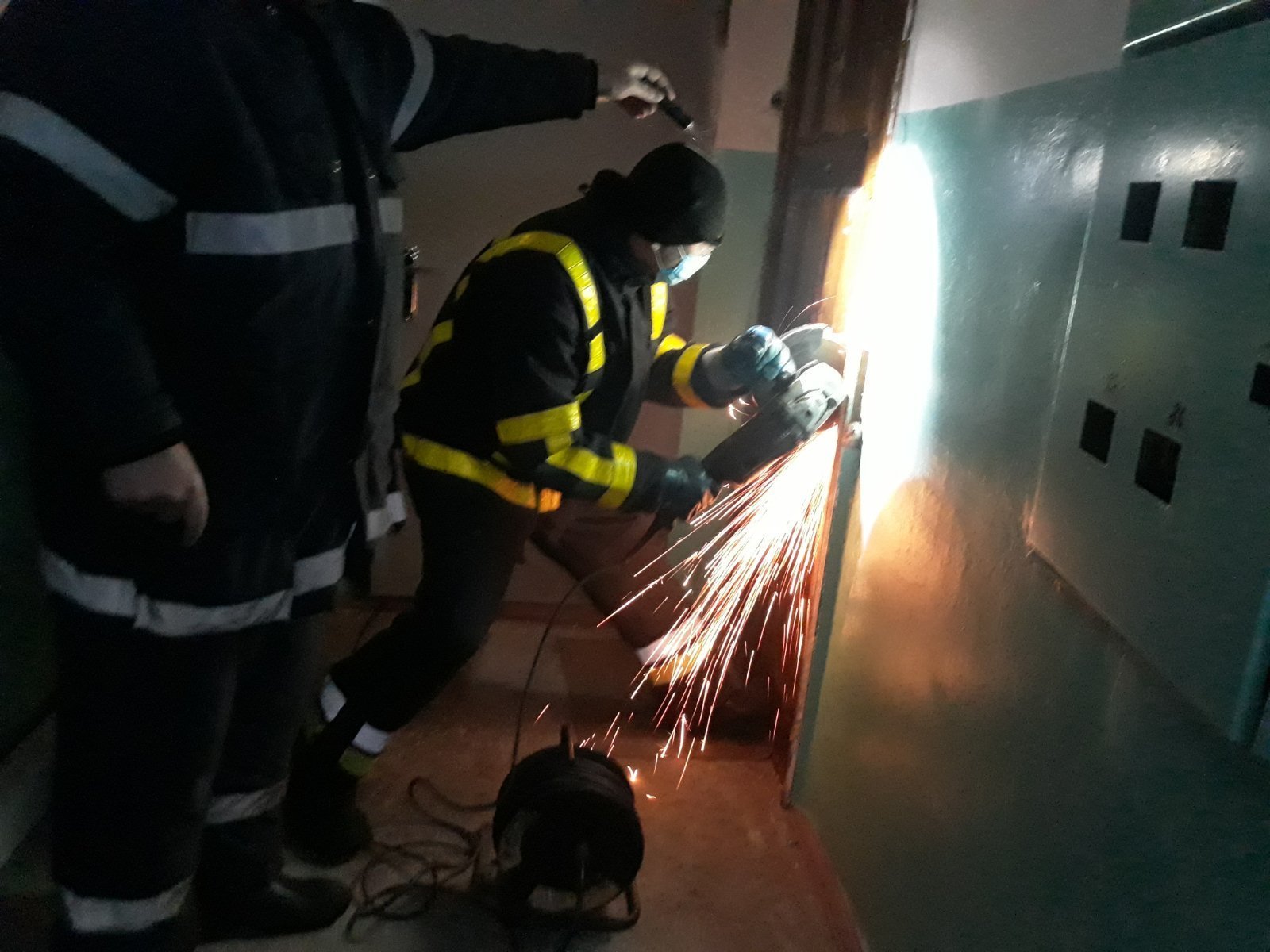 За допомогою болгарки надзвичайники зрізали замок та відчинили вхідні двері.