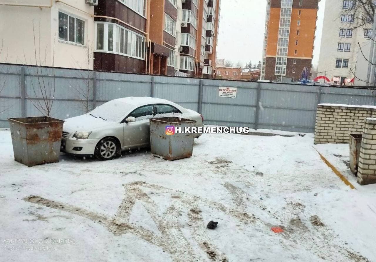У Кременчуці покарали власника автівки, який паркувався занадто близько до сміттєвих баків і заважав роботі маніпулятора.