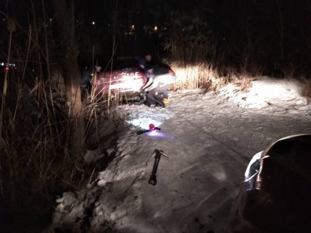 20 лютого на озері на Першому Занасипi автівка частково пішла під кригу. Судячи з фото у спільноті h.kremenchug, машину намагалися витягти квадроциклом.