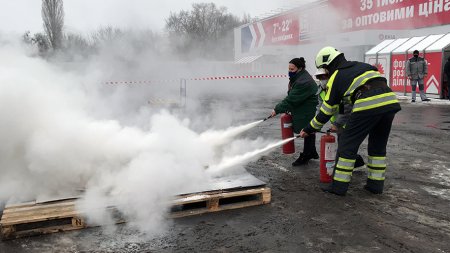 Навчання проводили на території «Нової Лінії», яка, за легендою загорілася. Персоналу показали, як правильно діяти під час пожежі та як користуватися вогнегасниками.