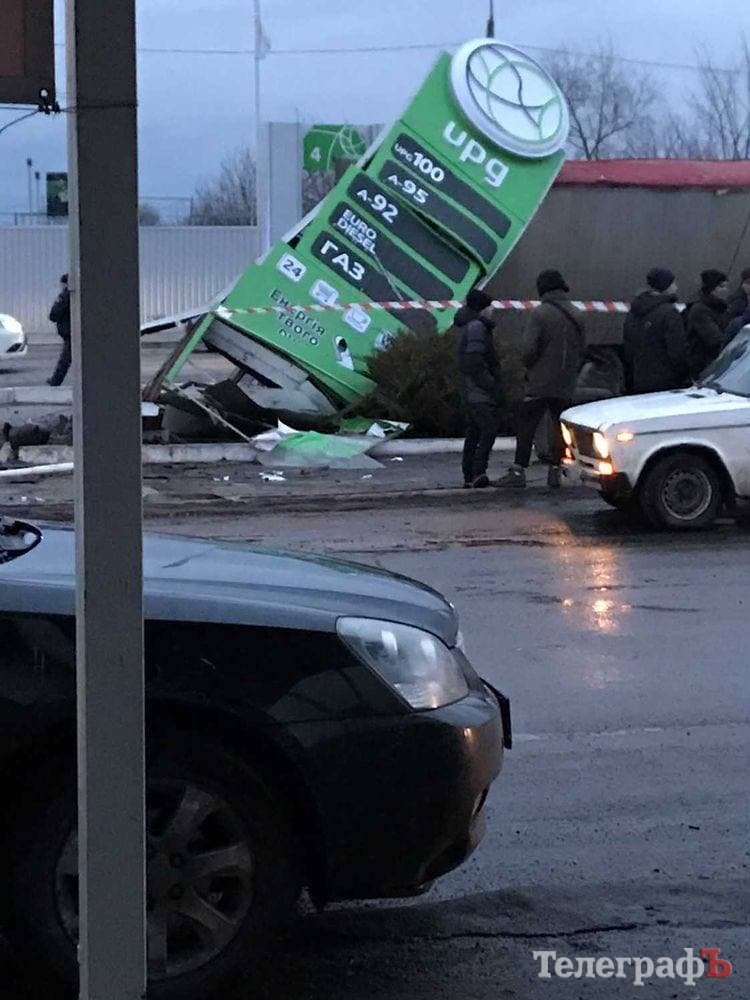 За попередньою інформацією, у фури відмовили гальма, вона влетіла у рекламу на заправці і перевернулася.